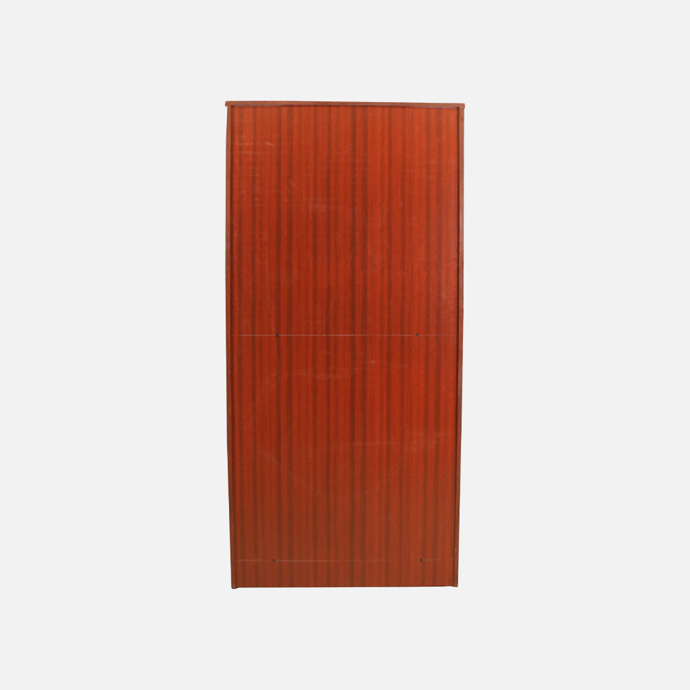 This wardrobe features a CNC groove design, elaborately carved into the sheesham wood, along with sleek steel handles.