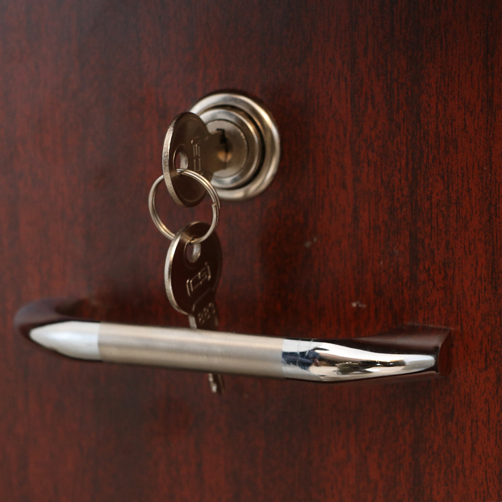 To keep your belongings safe and easily accessible, this wardrobe features a door with a safety lock.