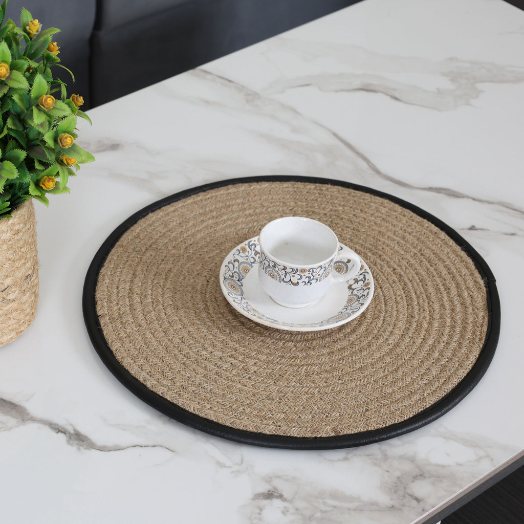 The Elegant Round Cotton Table Mat will make your dining experience even better.This 14-inch placemat, which has a natural jute-inspired design, gives your table setting texture and comfort. It is made of soft, environmentally friendly cotton and provides both fashion and utility. It is ideal for both special occasions and daily use because neutral colors go well with any type of décor. This mat shields your table from heat, spills, and scratches while being lightweight and machine-washable for effortless upkeep.