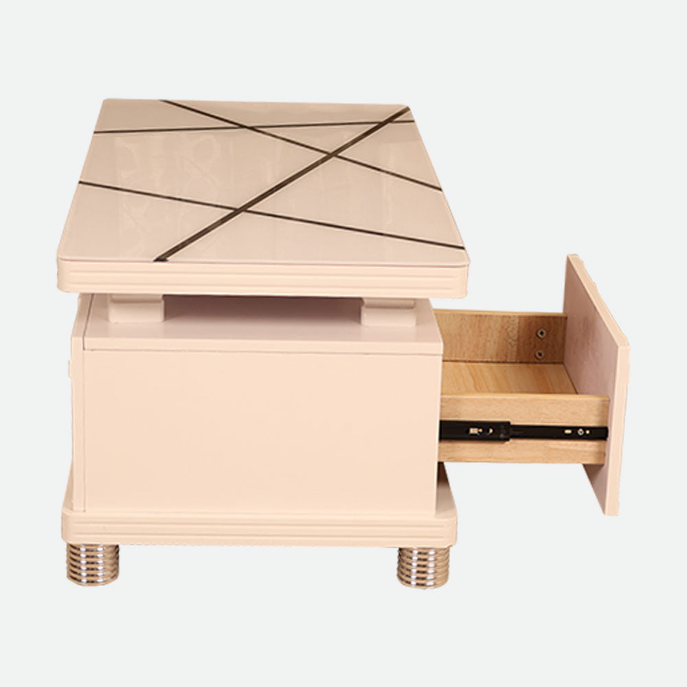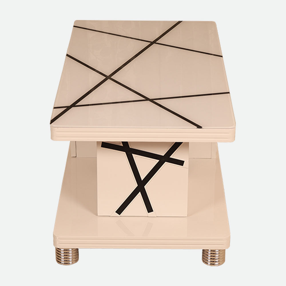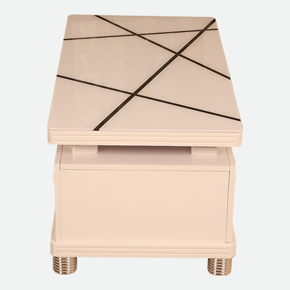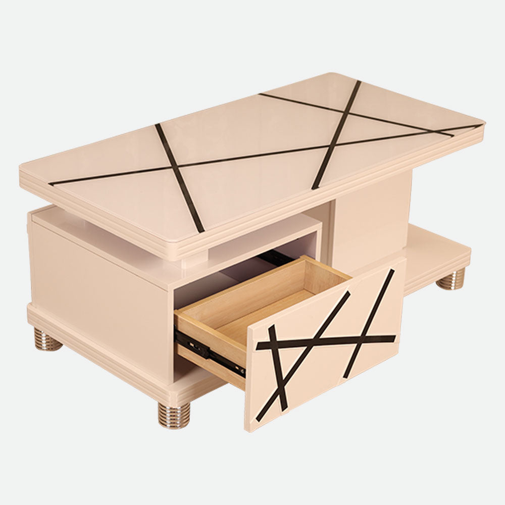 - This coffee table's premium tempered glass top adds to its elegant appearance and guarantees long-lasting strength, as it was designed with elegance and durability in mind.