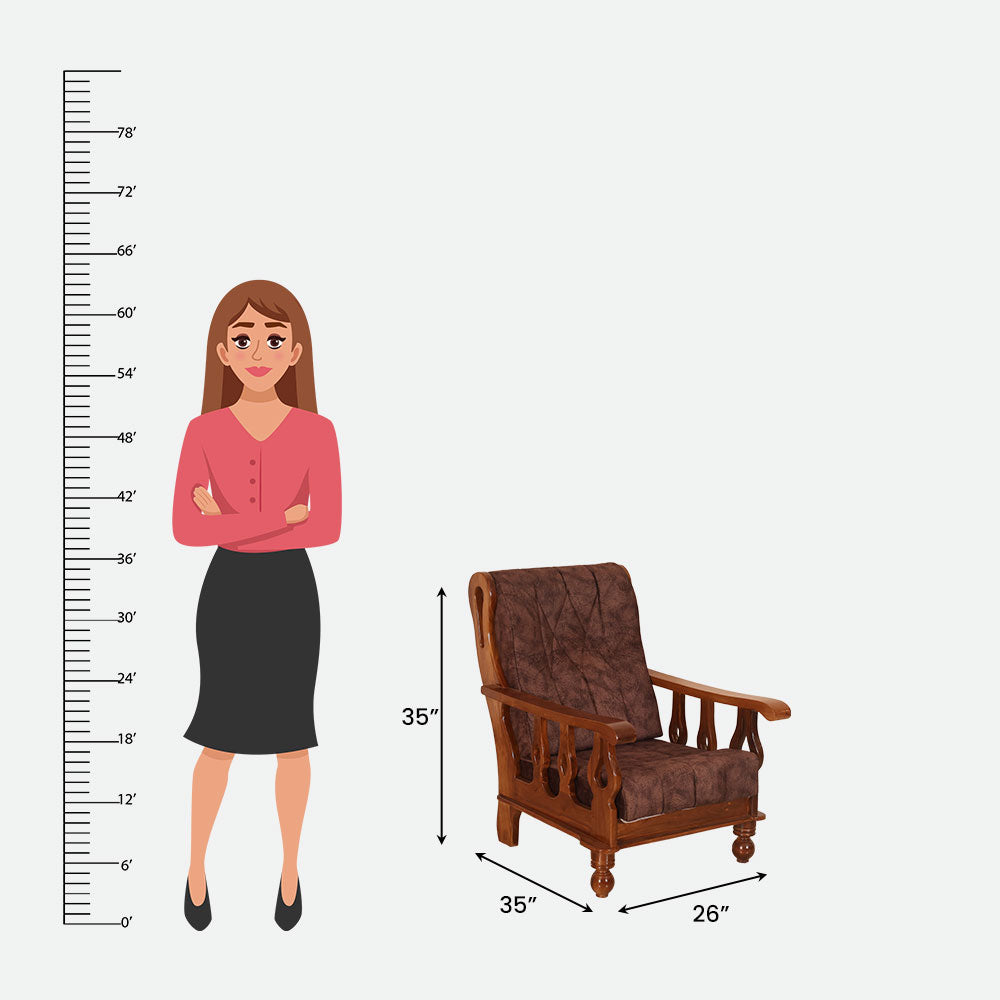 - A rich yet cozy environment is created by the deep brown, high-density fabric cushions and the elaborate wooden frame design.