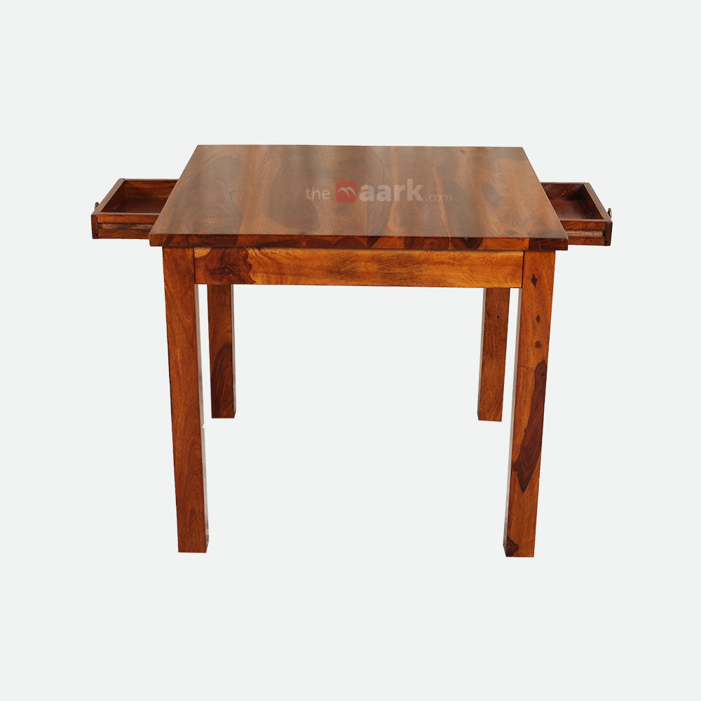 - Using the MAARK Sheesham Wood 2-Seater Dining Table Set, you can bring a bit of rustic beauty into your house.
